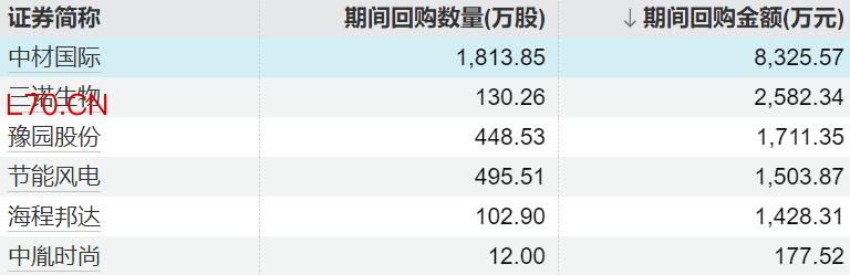 6家上市公司股票获回购,中材国际回购金额最高