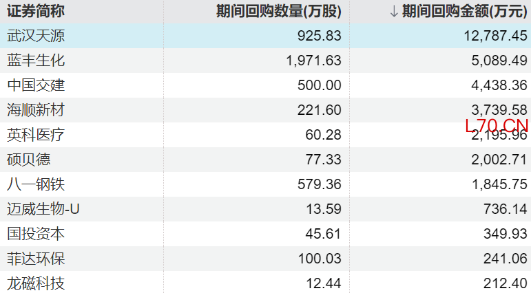 11家上市公司股票获回购,武汉天源回购金额最高