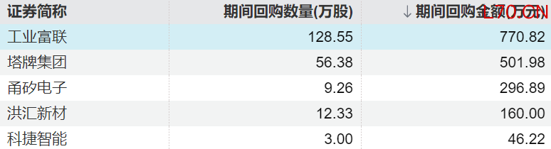 5家上市公司股票获回购,工业富联回购金额最高