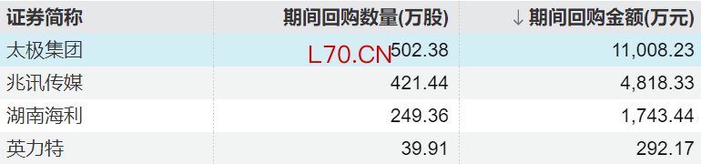 4家上市公司股票获回购,太极集团回购金额最高