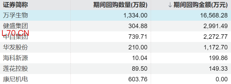 7家上市公司股票获回购,万孚生物回购金额最高